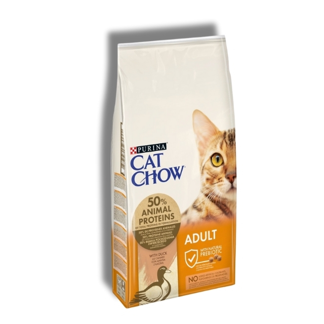 Cat Chow Adult Anatra 10kg. Cat Chow Adult è un alimento secco per gatti adulti che contiene tutti i nutrienti essenziali di cui il tuo gatto ha bisogno per un’età adulta attiva e un benessere generale. Con vitamina E per supportare le difese naturali e con vitamine del gruppo B per aiutare il gatto ad utilizzare l’energia efficientemente, contiene inoltre proteine di qualità selezionate appositamente per aiutare a supportare una muscolatura sana. Oltre ad essere ricco in pollo, anatra o salmone e fornire un’alimentazione completa e bilanciata la gamma CAT CHOW® contiene la formula specifica Naturium, una combinazione specifica di fibre da fonti naturali che supportano una sana digestione.
