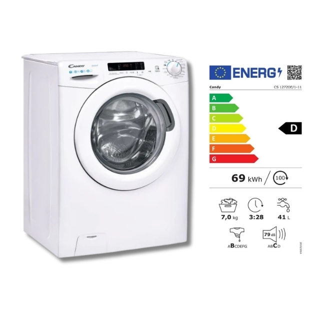 Candy Lavatrice Carica Frontale 7 Kg 1200 Rpm – Cs 1272de 1-11. Misure 49x60xh85 cm – Classe D – 16 programmi con Timer per partenza ritardata.