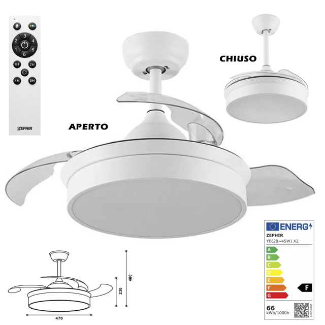 Ventilatore A Soffitto Con Pale A Scomparsa Bianco 4 Pale Design Moderno Materiale:.