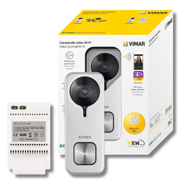 Kit Campanello Wi-fi E Alim. Din. Campanello con telecamera e wi-fi integrati, apertura elettroserratura e cancello automatico.