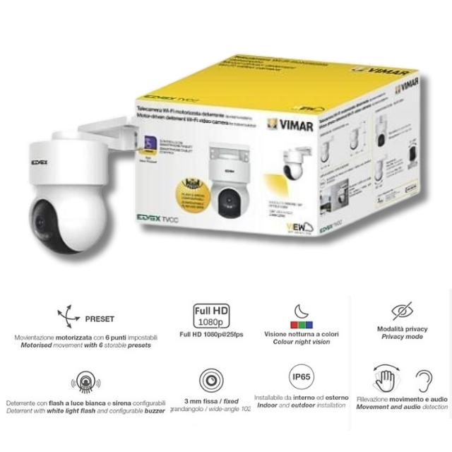 Telecamera Motorizzata A Batteria Elvox Pt Wi Fi 1080p Ob 3mm 130. A colori, full-HD, supervisione da app, registrazione su micro-SD fino a 128GB (non inclusa).