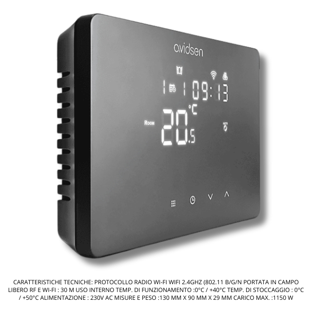 TERMOSTATO WIFI HOMETEMP W AVIDSEN TASTI A SFIORO COMPATIBILE GOOGLE HOME ED ALEX COLORE NERO