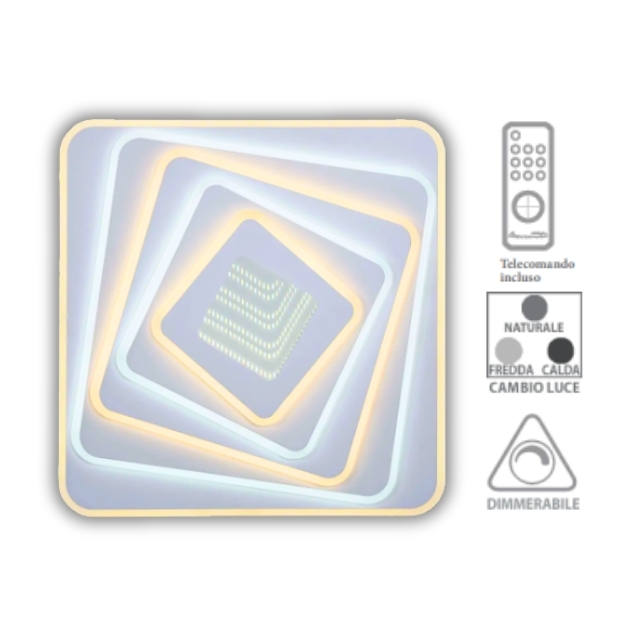 Camilla Plafo Led 60w Q50 Cct Rc. Plafoniera camilla tridimensionale cct dimmerabile 60w quadrata.