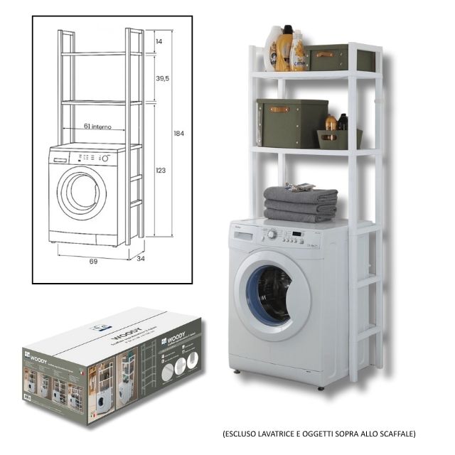 Scaffale Sopralavatrice 2 Ripiani Polipropilene Bianco 69×34 Xh184.