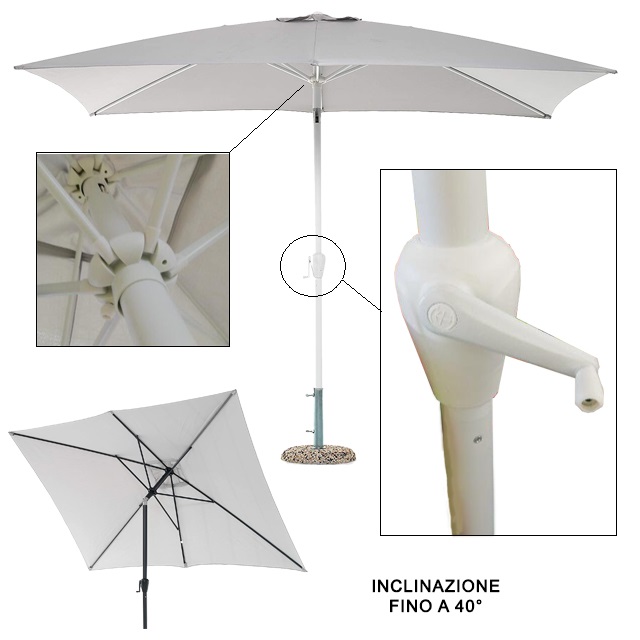 Struttura in alluminio verniciato a polvere epossidica di colore bianco, palo centrale diametro 48 mm;