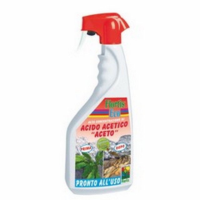 Corroborante ottenuto grazie all’azione di batteri del genere Acetobacter, che in presenza di aria, ossidano l’etanolo contenuto nel vino nella frutta, trasformandolo in acido acetico. La percentuale di acido acetico che ne risulta varia in base al tipo di fermentazione. L’aceto usato in cucina contiene tipicamente un volume di acido acetico compreso fra 3-5%, mentre questo prodotto arriva ad avere una percentuale 5 volte superiore. Grazie alla sua acidità, l’aceto si utilizza come corroborante per abbassare il pH dell’acqua quando si eseguono trattamenti con prodotti biologici alcuni dei quali perdono o diminuiscono la loro efficacia a pH neutro e alcalino. A contatto con tutti i tipi di piante verdi (es. fiori, erbe infestanti ecc..) esplica azione caustica, cioè a contatto con le piante ne altera in profondità i tessuti fino a bruciarli (azione diserbante).