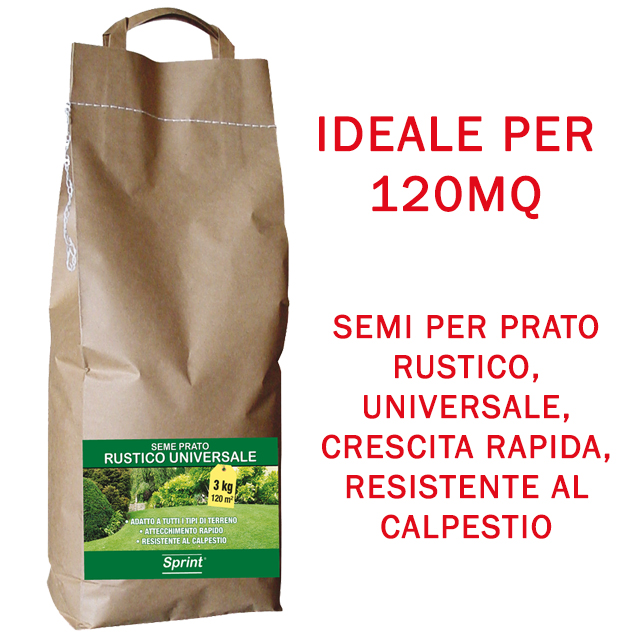 Semi per prato rustico, adatto ad ogni tipo di terreno. A crescita rapida e folta, alta resistenza al calpestio.