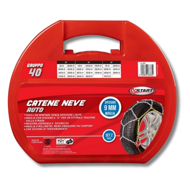 Catene neve per auto gruppo 40, prodotto garantito Italiano per la sicurezza su strade innevate o ghiacciate
