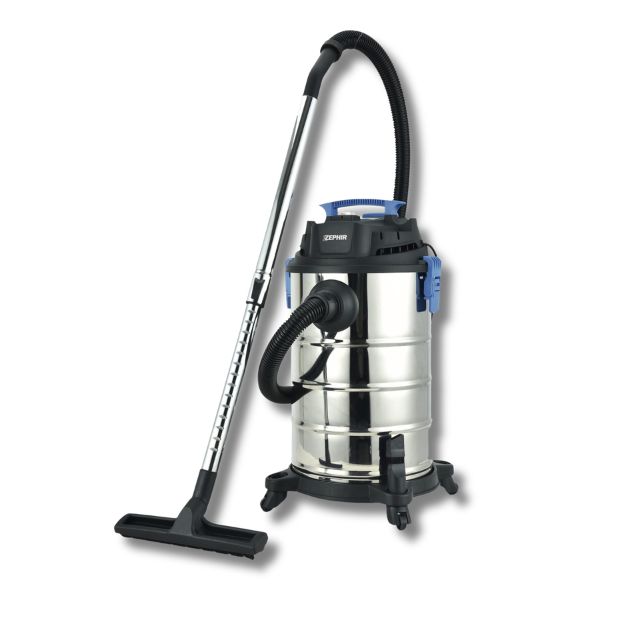 Aspirapolvere Industriale 30 Lt 1200w 220 240v 50 60hz. Potenza 1200w, contenitore in acciaio inox dalla capacità dim 30l, con maniglia tubo flessibile, beccuccio per fessure con mini-spazzola, spazzola combinata Wet & Dry per pavimenti, con ruote.