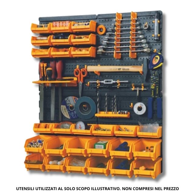 Gli utensili illustrati non sono inclusi, servono solo per mostrare la parete attrezzata completa.