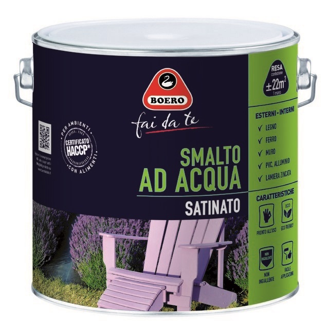 Facile da applicare. Non gocciola e non cola durante l’applicazione, si diluisce con acqua. Inodore non ingiallente. Ideale per il fai da te. Per supporti in ferro , legno , muro , fibrocemento , pvc , lamiera zincata ecc.(opportunamente preparati). Dichiarato idoneo per la verniciatura di ambienti con la presenza di alimenti, secondo la norma UNI 11021-2002 relativa alla metodologia HACCP.(Rapporto di prova n.103/08 rilasciato dall’Università del Sacro Cuore di Piacenza).
